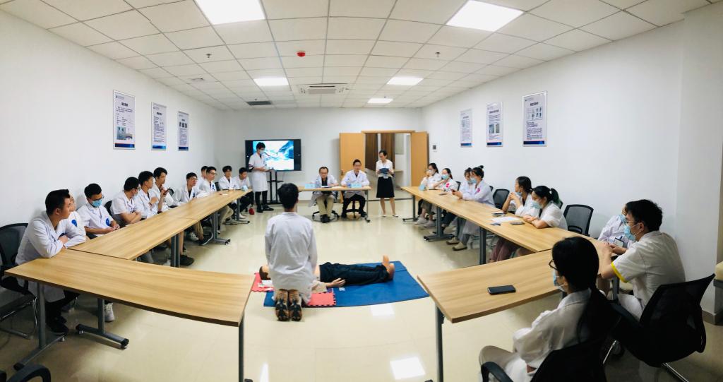 本次比赛内容为“心肺复苏”技能和“打结”技术,共有24名实习和见习医师参加。其中“心肺复苏”比赛两两搭配一组,考验选手们心脏按压、球囊通气操作以及相互之间的配合,评委由“AHA”急救培训导师急诊科黄增和呼吸科专家邱林担任。“打结”考验了选手们动作熟练程度,打结个数多者为胜出,评委是来自科教部的神经外科专家郑钧。