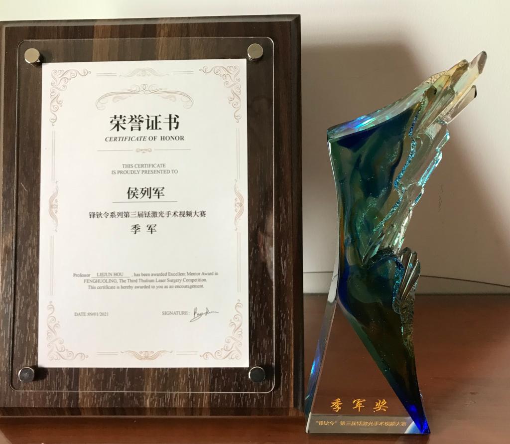 作为决赛中唯一一名区级医院选手,同时也是宁波地区唯一一位晋级决赛的选手,侯列军副主任医师在导师鄞州二院泌尿外科学科带头人翁国斌主任医师指导下,以一例“经尿道铥激光前列腺剜除术”,全方位展示了铥激光手术的技术特点和临床治疗效果,展现了鄞州二院泌尿外科中青年骨干医生的高水准与强实力,最终荣获总决赛季军。