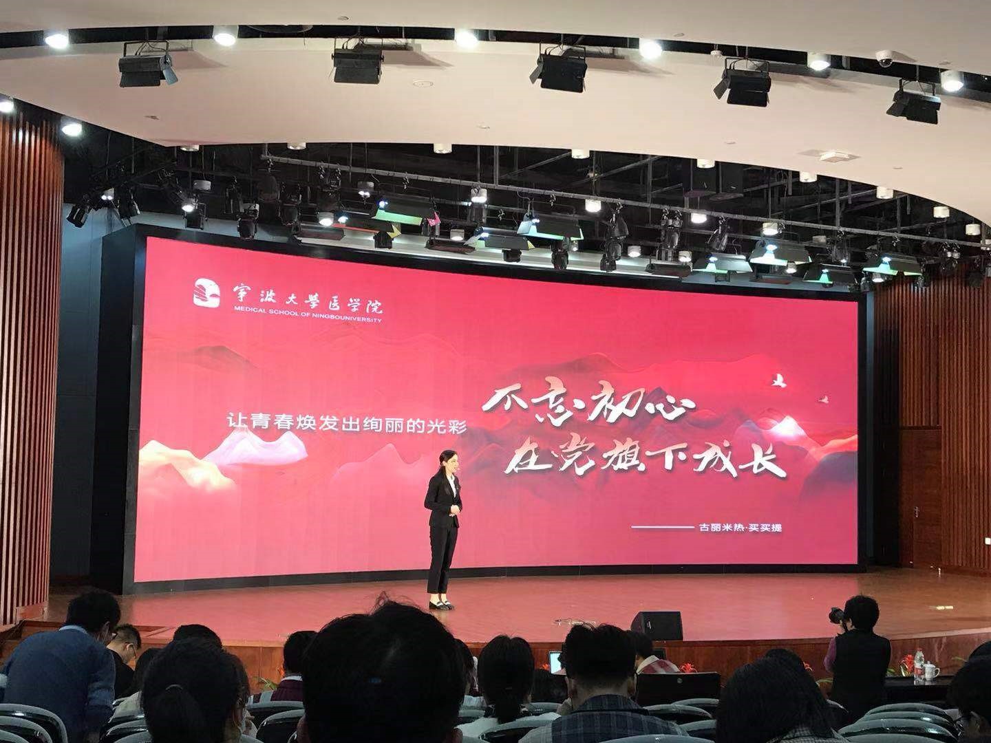 古丽米热·买买提以《不忘初心,在党旗下成长》为题,从讲述为她插上梦想的翅膀走出大山的支教党员教师王老师,及带领她飞回大山贡献自己的一份力量的马老师,向现场观众展现了自己从党的政策的“受益者、学习者”成长为现在的“实践者”的经历,获得教师组一等奖。