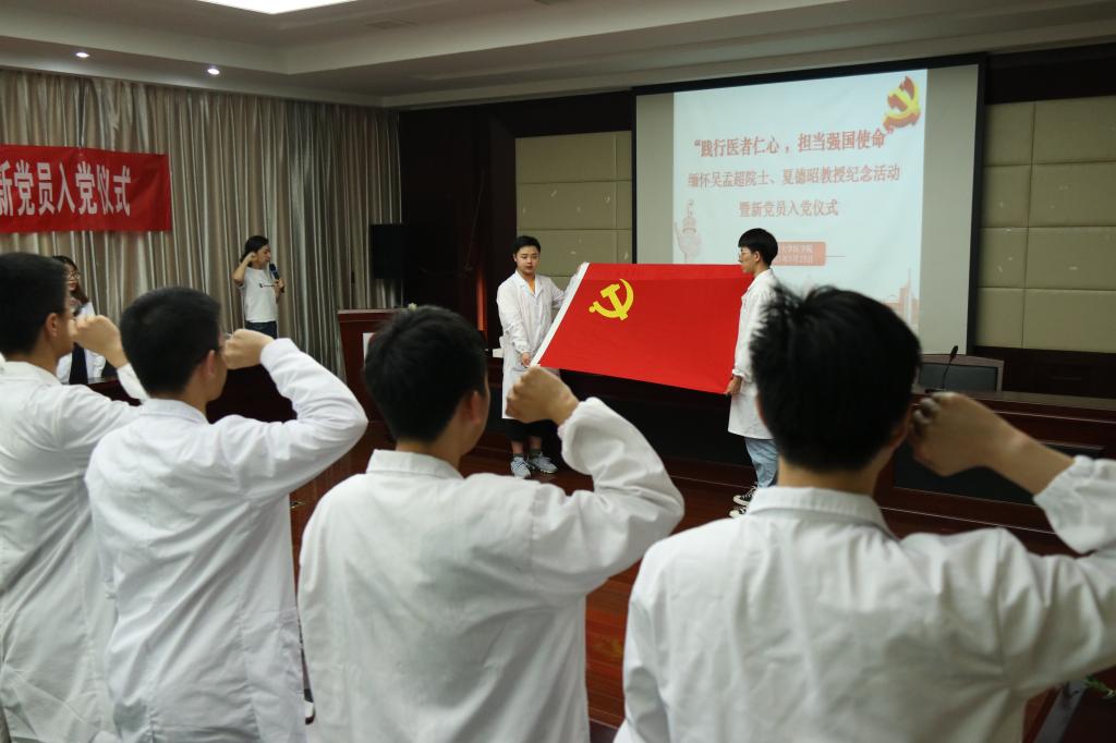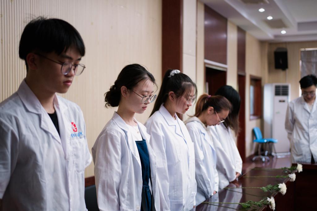 5月25日中午,色花堂 医学院组织学生开展了“践行医者仁心,担当强国使命”缅怀吴孟超院士、夏德昭教授的纪念活动暨新党员入党仪式,以此缅怀先贤,学习医者仁心的先进事迹,传承和发扬为建设健康中国不懈奋斗的精神力量。