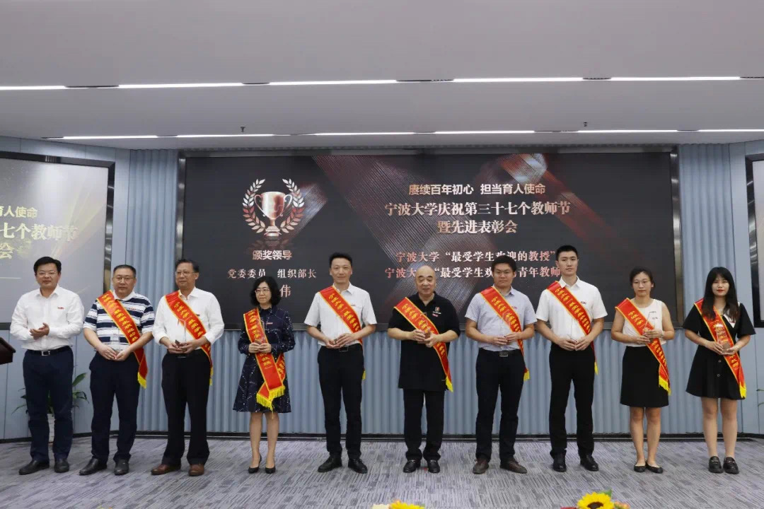 医学院“第二批宁波市‘四有’好老师”获得者刘昱老师、“最受学生欢迎的教授”获得者马青老师以及“浙江省课程思政示范课程负责人”张雁儒老师和季林丹老师在大会上受到表彰。
