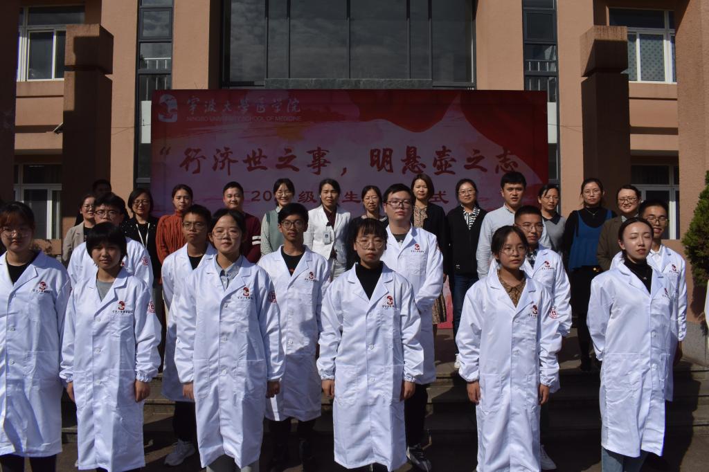 仪式上,全体领导和班主任怀着美好的期待和祝福向2021级新生授予白大褂,为学生扣好人生中的第一颗白大褂的扣子,让同学们谨记医学工作的初心和使命。“用同情心展示百年仁爱,用责任心实施济世医术”,身着白衣,高握右拳,在宁大医学院副院长叶孟老师的带领下,同学们庄严宣誓:为祖国医疗卫生事业的发展和人类的身心健康奋斗终身。宣誓之声饱含着同学们对未来投身医学的美好憧憬,展现同学们对医学的热爱和坚定。