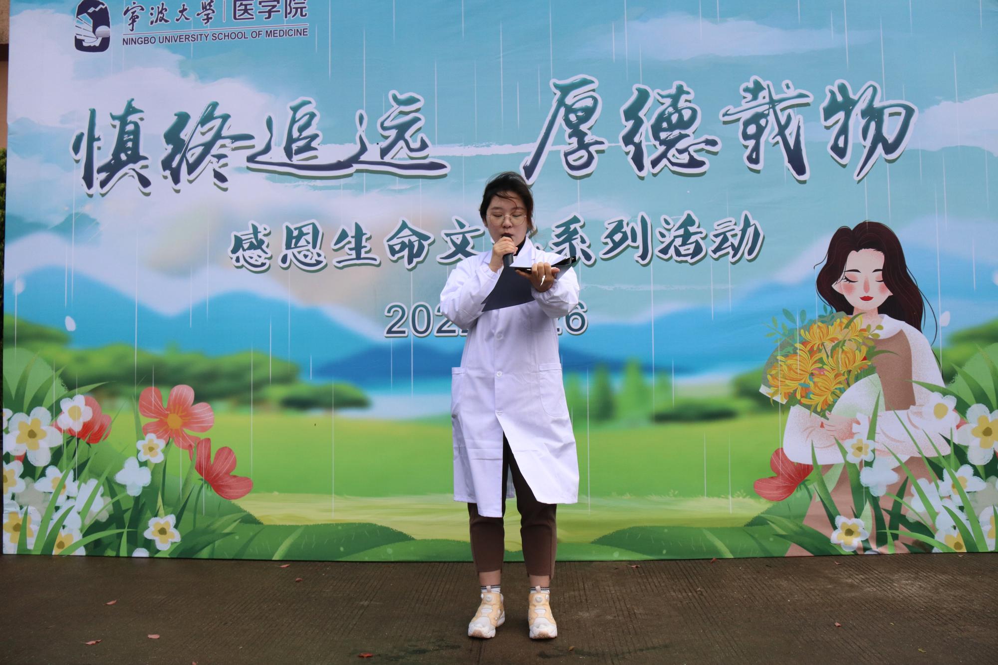 医学院感恩生命系列文化活动自2020年底启动以来,多次开展生命教育活动,每年组织前往九龙湖遗体捐献陵园开展清明祭扫活动,今年受疫情影响,活动只能在学院内开展,但同学们的收获和成长只增不减。“每年在学院开展的感恩生命活动中,我都会更加深刻的体会到献身医学的不易,为此我和我的同学们也坚定学医的决心、不断的去奋斗,在未来为除人类之病痛的事业中作出自己的微薄贡献”临床医学专业郑周泳说。