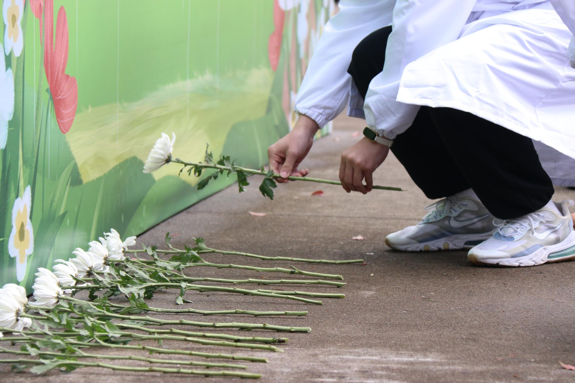 一捧白菊寄哀思,一袭白衣担使命。相信清风会带去医学院全体师生由衷的敬意和深切的缅怀!