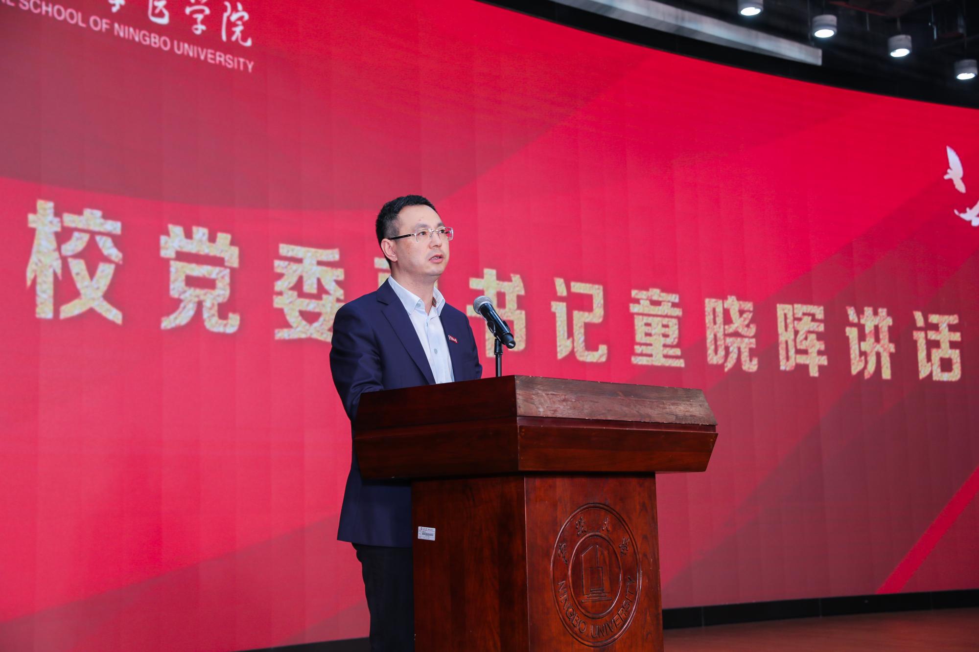 童晓晖对色花堂 -海尔施科研平台成立、附属医院教学设备移交成功和各位获奖师生表示祝贺,对长期以来支持和关心医学院发展的宁波帮人士和社会各界人士表示衷心感谢。他表示学校高度重视医学院发展,正在制订支持医学院发展方案,希望医学院凝心聚力,切实增强责任感和使命感,不断探索和推进医学教学和人才培养模式改革,全力以赴投入科研和学科建设工作,并寄语医学新生牢记医学誓言,为宁波市医学高等教育事业发展和医疗卫生水平提升作出更大贡献。