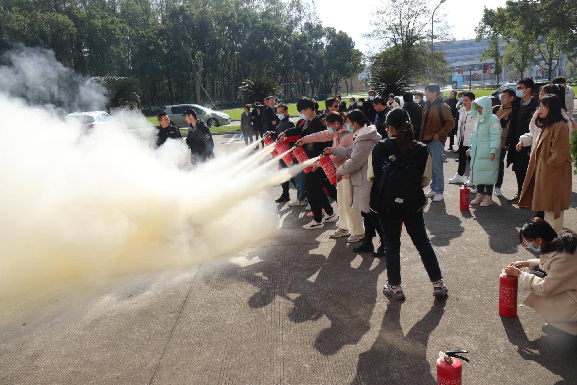 活动开始前,保卫处老师首先通报了最近的几次消防事件,指出消防安全非小事。他还现场演示了佩戴防烟雾面具,并对灭火器使用做了正确指导。随后,师生们按着指导进行了一次消防灭火演练。