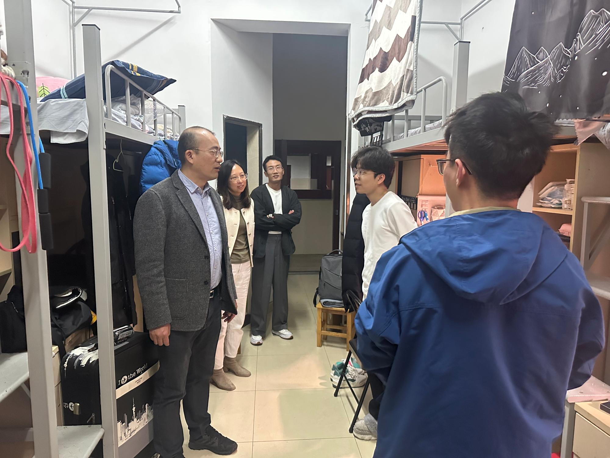 走访过程中,老师们与同学们进行了亲切交流,详细询问同学们的生活、学习情况,提醒同学们要筑牢防诈意识,鼓励同学们要注重专业学习,打好基础,努力提升专业技能,同时要秉承“医者仁心”的品质,更好地为患者服务、为社会服务。在研究生寝室,王钱永仔细询问同学们规培情况和实际需求,听取大家对色花堂 未来发展的相关建议,同时对临床医学专业型硕士研究生在疫情期间坚守岗位,奋战一线的职业操守和奉献精神给予肯定。
