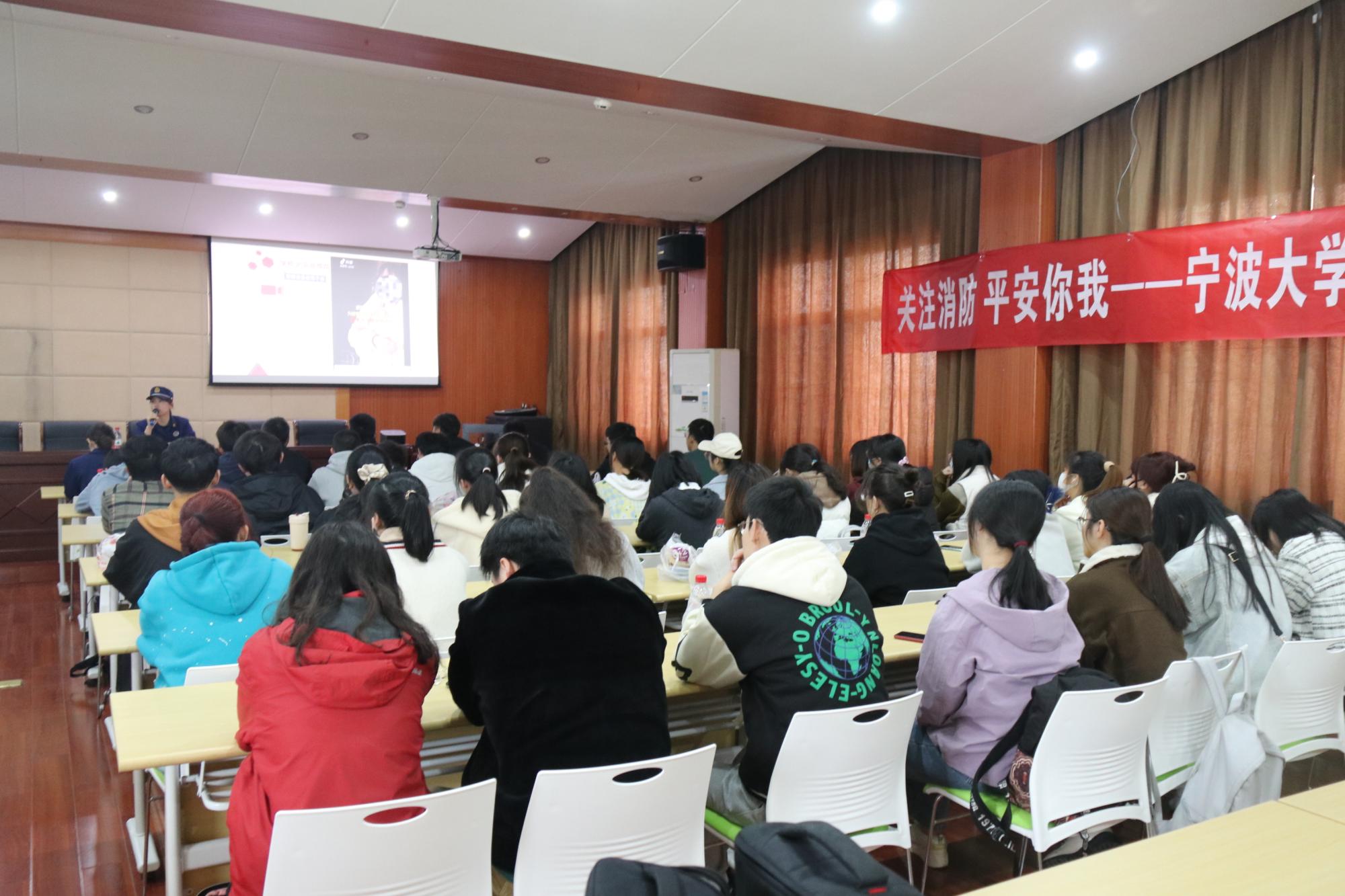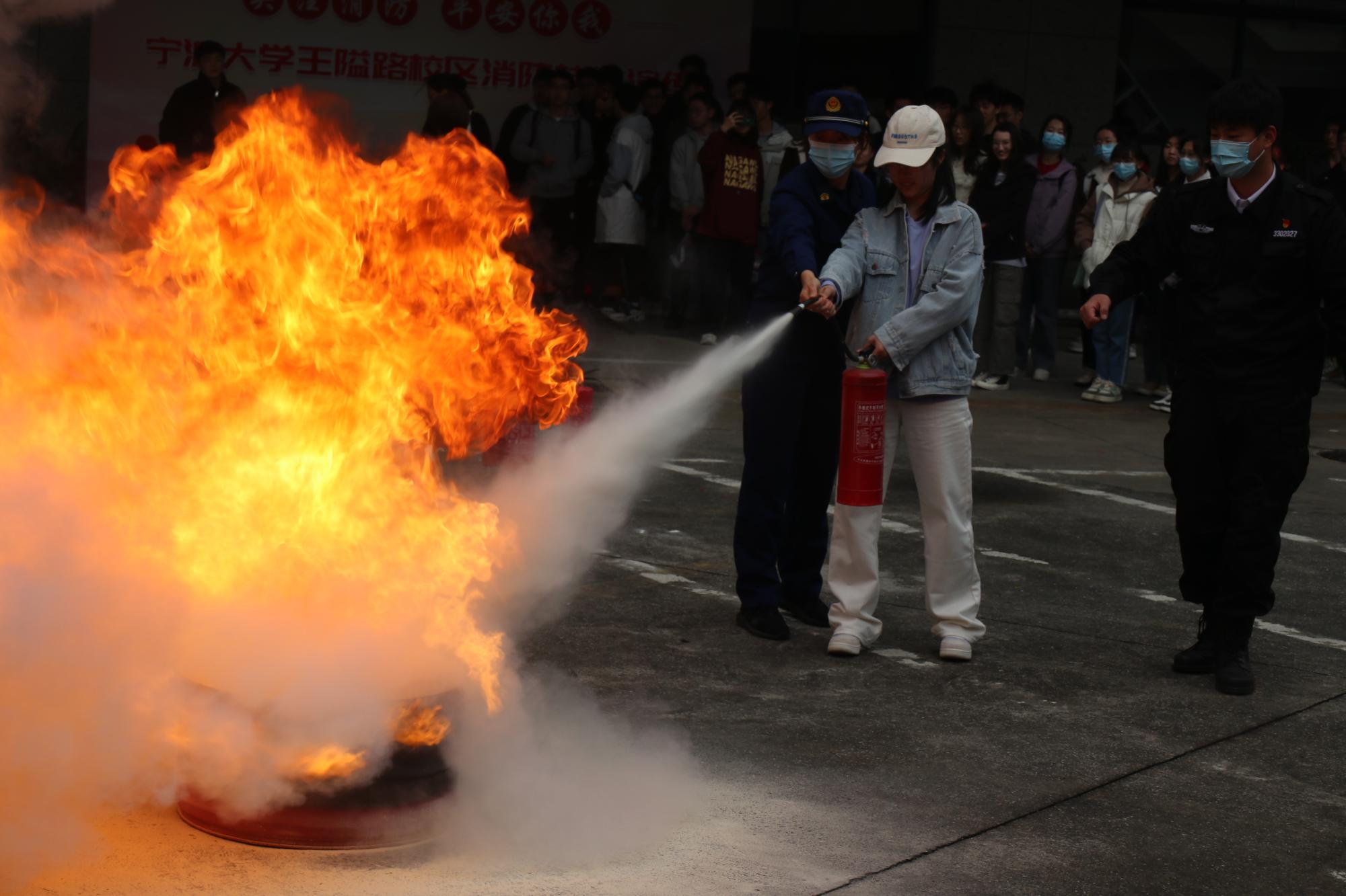 鄞州区消防救援大队宣讲员生动形象地讲解了如何预防火灾、扑救初起火灾、使用灭火器、正确逃生自救等知识,给师生们上了一堂警醒又意义深远的生命教育课。在互动环节,同学们就日常比较关注的消防安全问题向宣讲员咨询,现场气氛热烈。随后,辅导员开展交通安全知识讲座,提醒大家在外务必注意人身安全。师生们还进行了火灾扑救演练,提高自身消防技能。