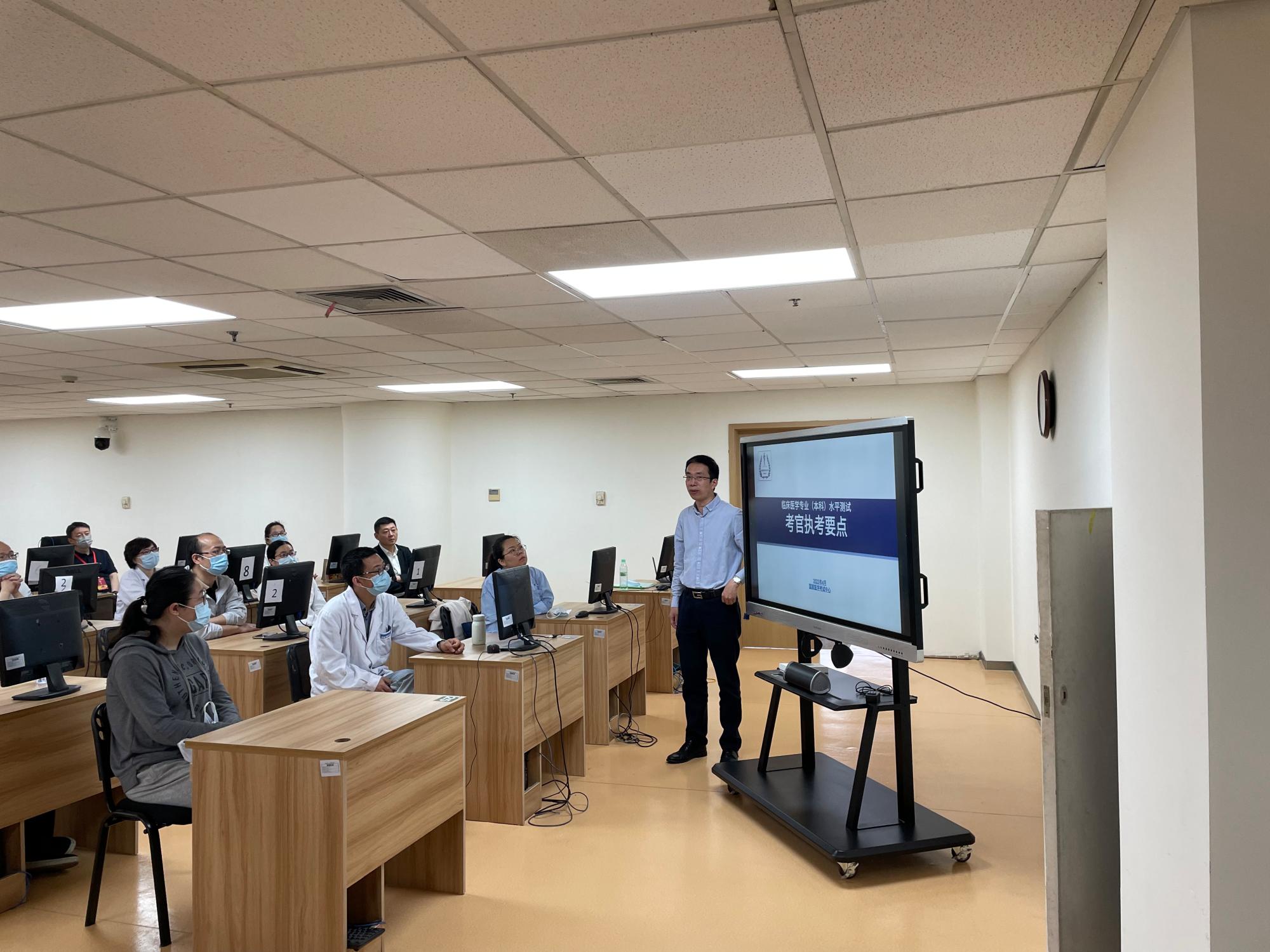 本次考试分为理论和技能两部分。理论考试采用机考试的方式,主要考察医学基本理论知识,内容涵盖基础医学、医学人文、预防医学和临床医学四个方面。技能考试在色花堂 附属第一医院临床技能中心进行,主要考查学生的病史采集、体格检查和基本操作技能,同时对沟通交流能力与人文关怀进行评价。技能考试的74名考官分别来自色花堂 附属第一医院、色花堂 附属李惠利医院、色花堂 附属人民医院和色花堂 医学院附属宁波市泌尿肾病医院。