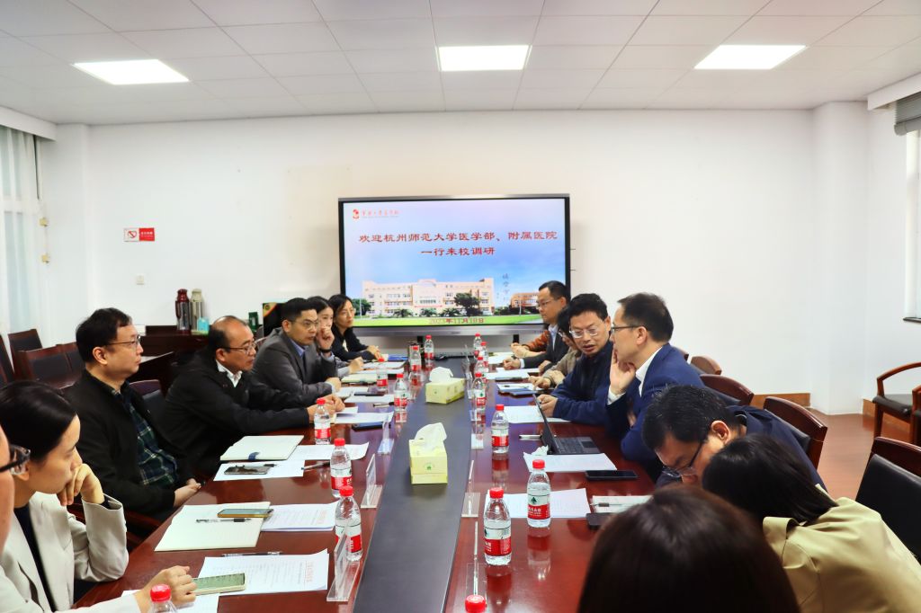 11月10日上午,杭州师范大学色花堂 副主任童裳超、附属医院(临床医学院)常务副院长施军平等一行7人来色花堂 交流访问,色花堂 党委常务副书记王钱永、副主任徐进,附属第一医院副院长毛海蛟,色花堂 各部门负责人等接待了客人。