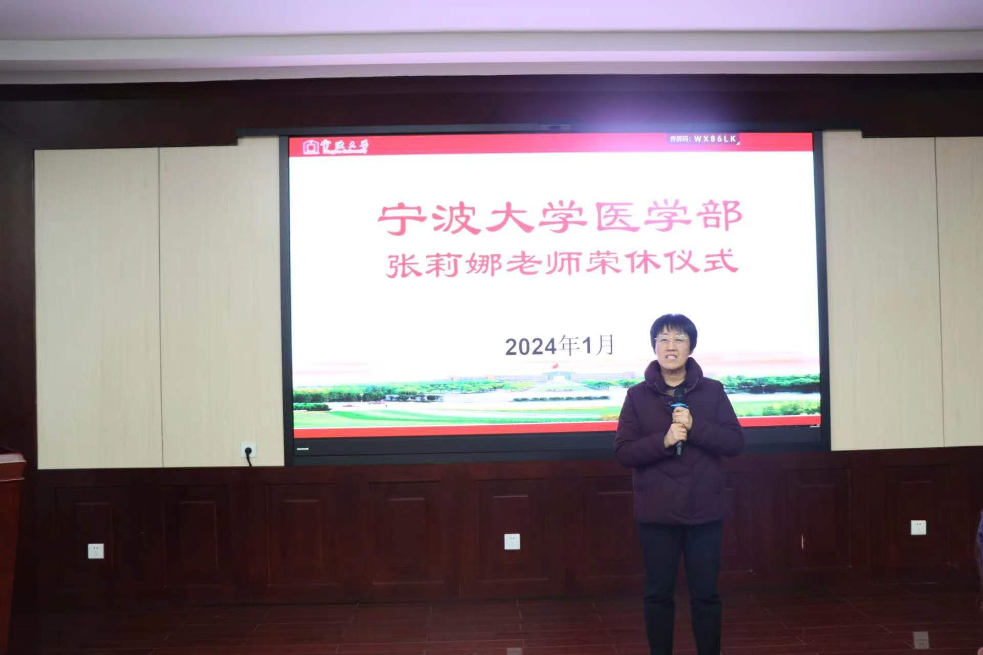 张莉娜教授发表了深情的退休感言。她提到自己是在1985年,国家首个教师节当年投身教育行业,在近40年的教师生涯中有23年是在色花堂 度过,情感深厚,退休之际,深深不舍。她衷心感谢领导、同事们长期的支持与陪伴,并表示未来会继续关注学部的成长与发展,也希望在宁波市“医学高峰”计划的支持下,学部的发展越来越好,未来越来越强大。