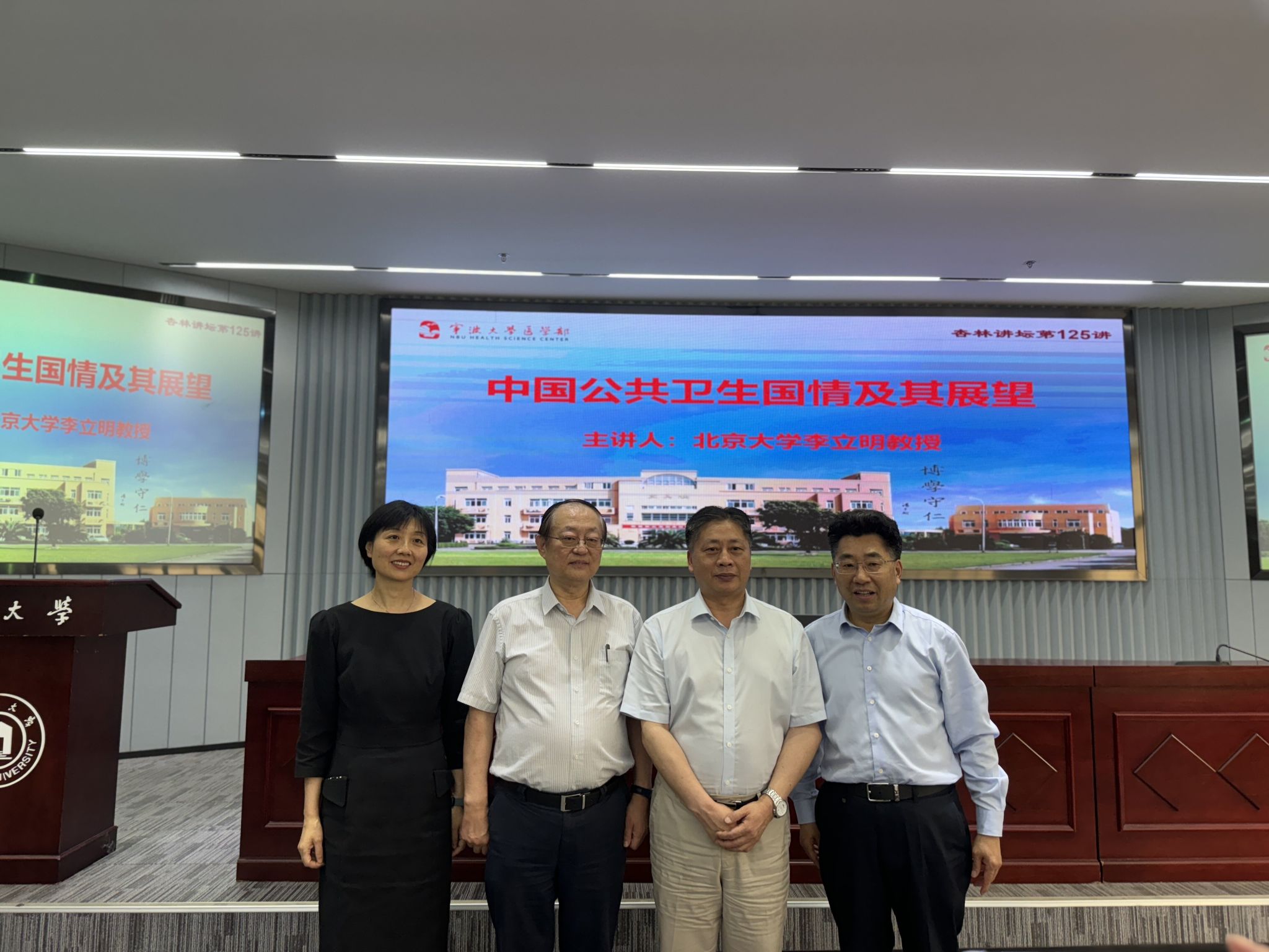 6月25日,李立明在安中大楼风华厅做了《中国公共卫生国情及其展望》的学术报告,这也是第125期杏林讲坛。他以学贯东西的知识、生动丰富的案例和深邃敏锐的思考,向大家分享了公共卫生的起源、中国公共卫生实践、联合国可持续发展战略及其落实、中国公共卫生和疾控系统改革及展望等内容。他的报告让广大师生颇受启发,并对于建好公共卫生与预防医学学科、培养为健康中国服务的复合型公共卫生人才的必要性和紧迫性有了十分清醒的认识。