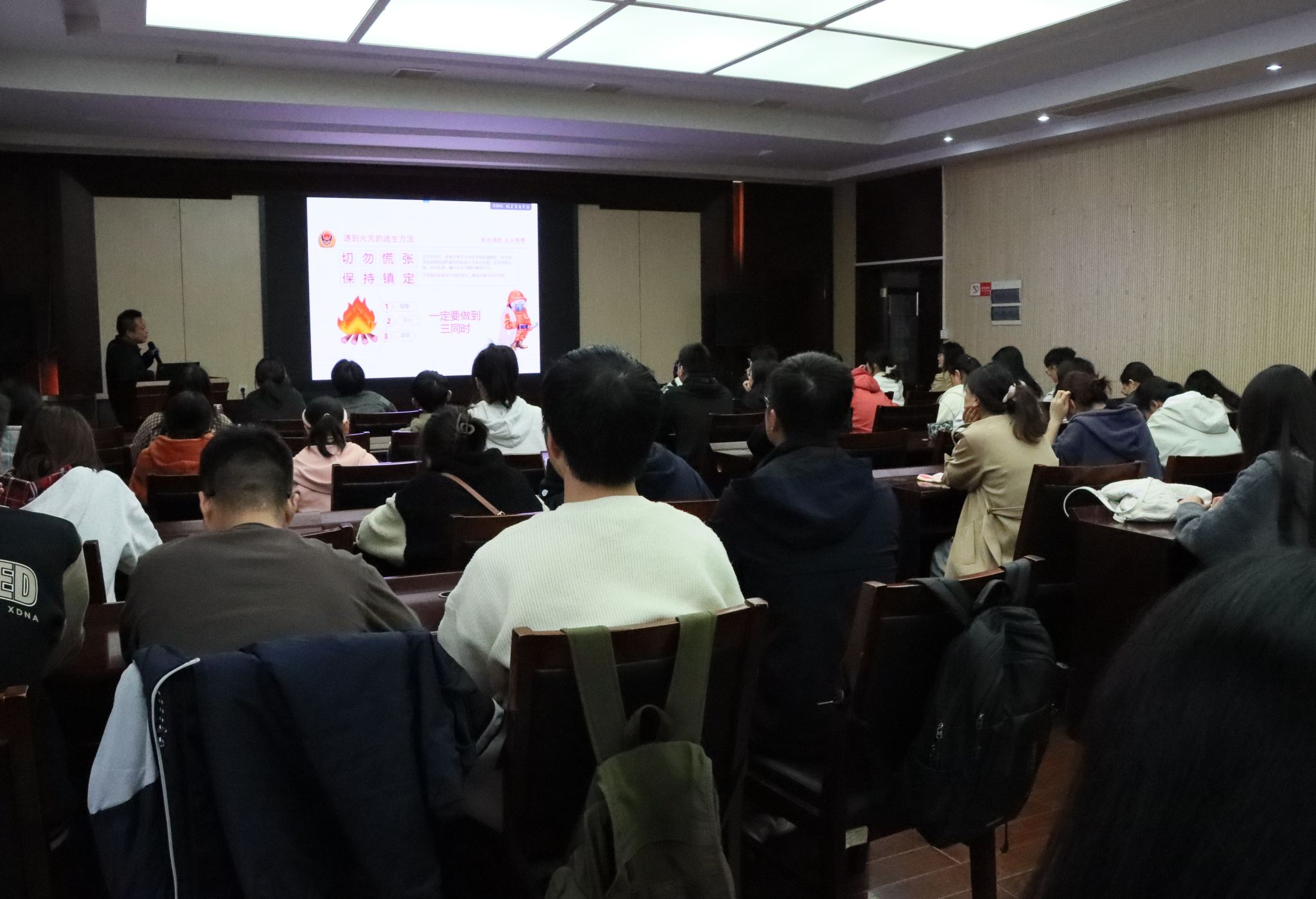为进一步增强师生消防安全意识,提高自救防范能力,11月11日下午,色花堂 组织开展了119消防宣传周消防安全演练活动。校保卫处工作人员到场指导,色花堂 教师及24级研究生共76人参加了此次活动。