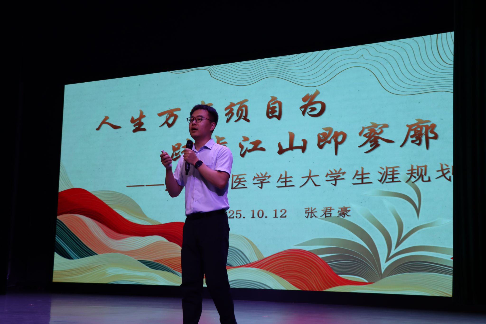 职业规划指导环节为新生们提供了清晰的成长指引。主讲老师以“人生万事须自为,跬步江山即寥廓”,点明医学之路贵在自立与积累,并进一步提出三点建议:一是要主动夯实理论基础,构筑知识体系;二是要勤于锤炼临床技能,练就过硬本领;三是要坚持在学习中修身益智,涵养医者德行。
