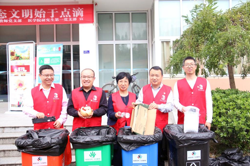 为倡导垃圾分类理念,弘扬新时尚,让更多的师生参与到实践垃圾分类的行动中来。10月22日中午,医学院预防医学学系教师党支部联合研究生第一党支部开展了“垃圾变宝源自分类,生态文明始于点滴”垃圾分类志愿服务活动,启动仪式在王长来楼门前举行。色花堂 后勤管理处处长柴哲军、医学院党政班子及师生40余人参加活动。