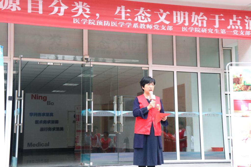 启动仪式上,医学院党委书记王幼芳作了动员讲话,她指出党的十八大将生态文明建设纳入“五位一体”的中国特色社会主义事业总体布局,垃圾分类事关每个人,是一件全民参与的事情,关系到中国13亿多人生活环境改善,为更好的贯彻和践行习总书记新时代中国特色社会主义思想,实施垃圾分类是必须执行的一项任务。
