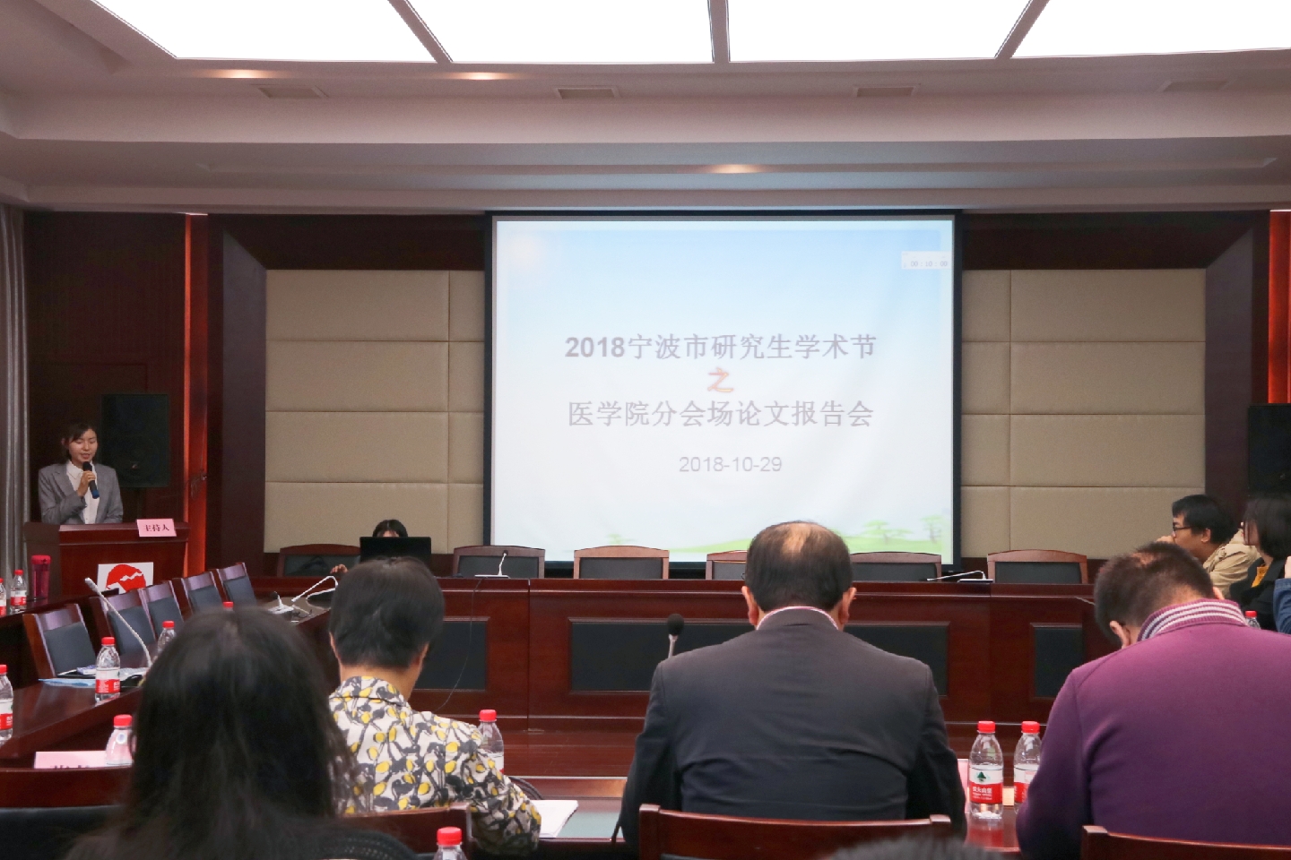 10月29日上午,2018年宁波市研究生学术节论文报告会第十五分会场在色花堂 医学院王长来楼二楼多功能报告厅举行,医学院副院长王钦文教授、流行病与卫生统计学张莉娜教授、生理学与药理学张俊芳教授、生理学与药理学崔巍副教授应邀担任此次报告会的评审专家。