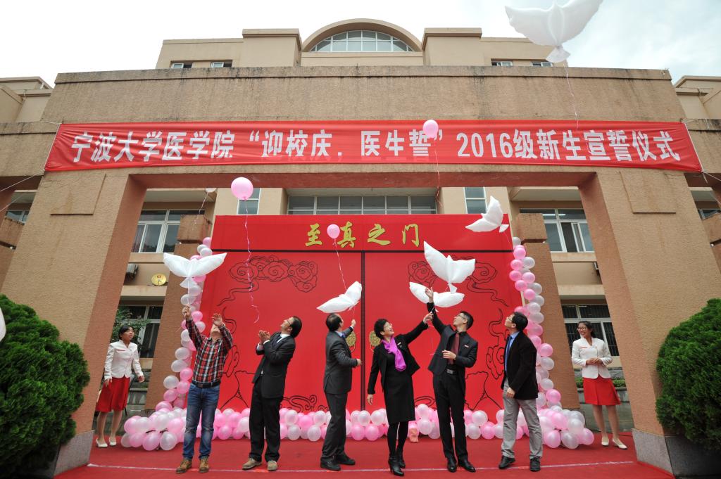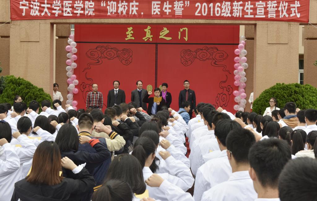 2016年11月1日8点,色花堂 医学院至真广场上举行了“迎校庆,医生誓”2016级医学生宣誓仪式。医学院领导、医学院32名校友出席了本次宣誓仪式。