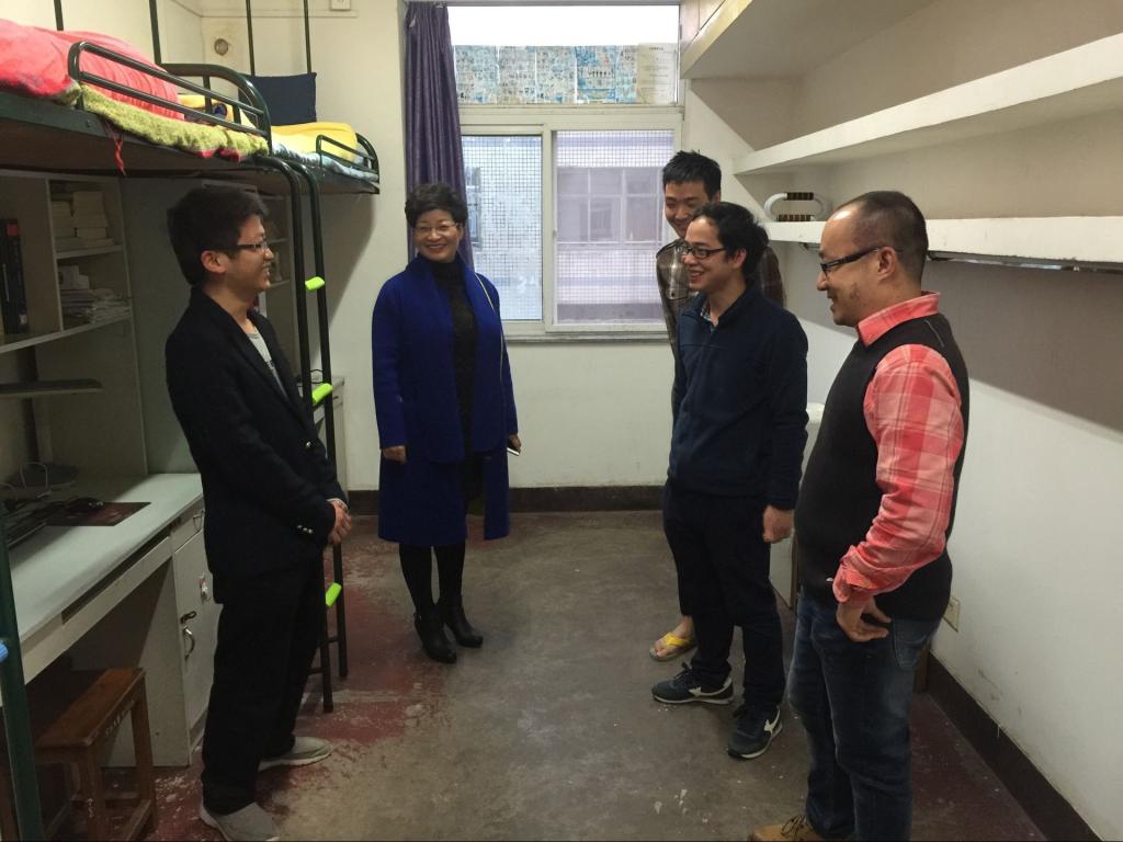 在走访寝室过程中,老师们对本科生和研究生的寝室卫生状况进行了检查,着重强调了学校文明寝室建设的重要性,鼓励同学们培养健康良好的生活方式,以积极的状态迎接新学期的学习和生活。与此同时,老师与同学们进行了轻松愉快的交流,及时了解了同学们新学期生活适应情况以及思想动态,详细询问了同学们医院实习情况和考研就业的情况。