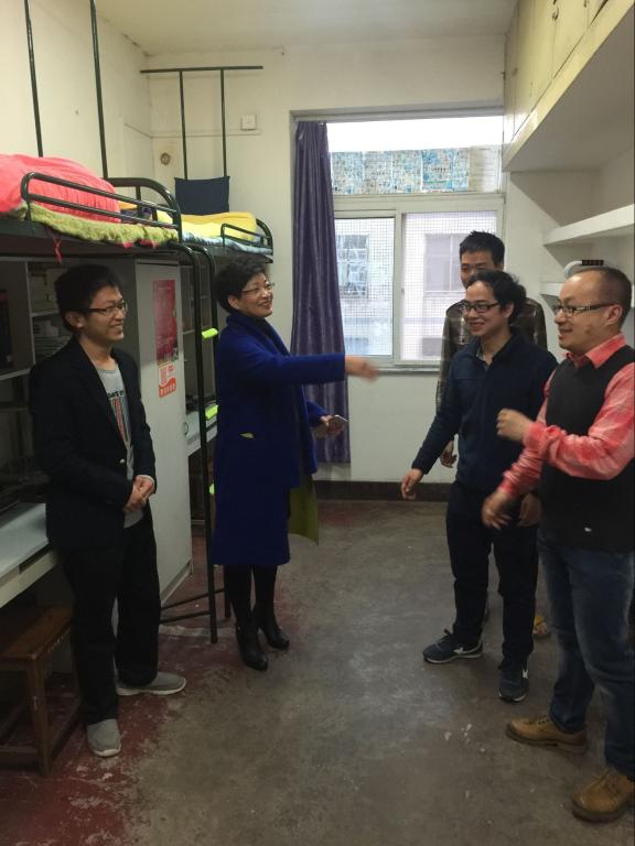 为了更好地了解医学院学生的到校情况以及学生寝室的生活状况,3月4日,医学院党委书记骆巧凤、党委副书记于瑾滔和学工办辅导员对医学院学生寝室进行了走访。