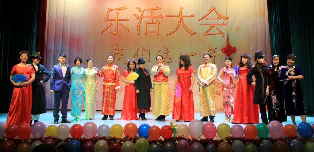 乐活大会以年度大片“我们这一年”开场,以恢宏的气势,系统地回顾了2015年医学院上下齐心协力顺利完成教育部临床医学专业认证等大事件,展示这一年“大家”的业绩、“小家”的变化,充满了浓浓的人文关怀。随后各学科系、办公室各显神通,全体教师们热情高涨、积极参与、展现才华为大家奉献出一个个高质量的欢乐大餐。从歌曲《大梦想家》的活力四射、《喜欢你》的语音绕梁;到舞曲《梦幻舞蹈》的人体光电造型、《映山红》的欢喜快乐、《时尚广播体操》的爆笑创意、《舞蹈串烧》的青春魅力;相声《祝你好孕》、小品《二胎政策》、《我是武侠之英雄救美》这些语言类节目更是诙谐幽默,巧妙地运用了2015年度最热的社会热点,最流行的语言,结合角色教师的自身特点原创笑料,甚至勇于自黑娱乐大众,全场笑声源源不绝。学院特别策划的大型情景旗袍秀《风华绝代》更是学院全体领导班子、教授、普通教工纷纷身着华丽衣衫粉墨登场走秀,动作设计中体现了优雅柔美、恭贺喜庆以及反串搞笑的元素,全场上下积极互动,把场面气氛推向了高潮。此外,活动中还穿插了游戏环节,现场教职工参与热情高,现场一片欢声笑语,其乐融融。