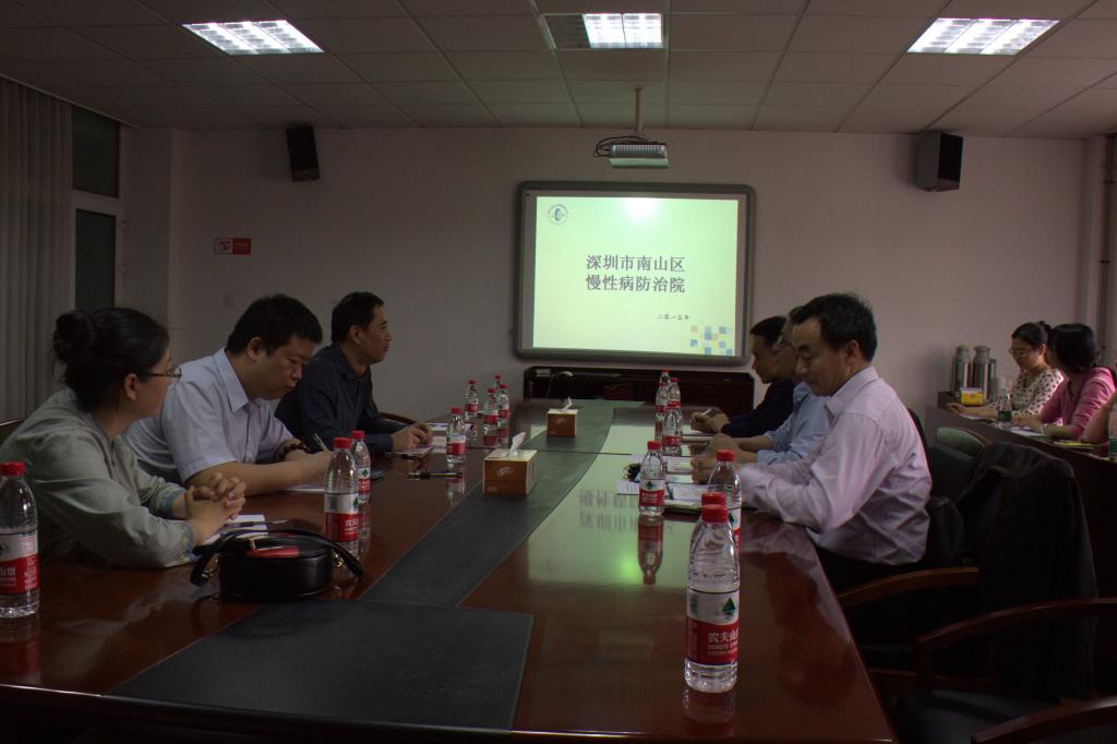 4月27日下午,深圳市南山区慢性病防治院陈思韩院长、张涛主任、王长义副主任来医学院访问,学校科研处处长赵恒义、医学院副院长王钦文、段世伟教授、韩丽媛博士陪同参观。