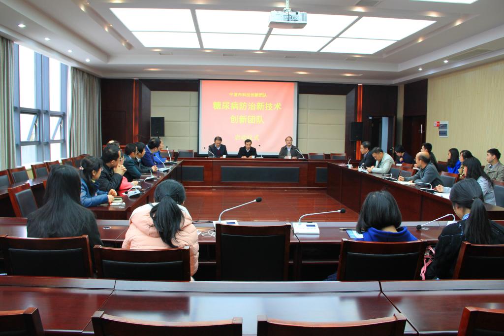 3月23日,宁波市科技创新团队“糖尿病防治新技术创新团队”启动仪式在医学院召开。宁波市科技局副局长蒋如国一行参观了糖尿病实验室并作相关交流。校科技处处长赵恒义、医学院执行院长周文华、副院长王钦文、副院长徐雷艇、色花堂 糖尿病研究中心主任步世忠参加了本次启动仪式。