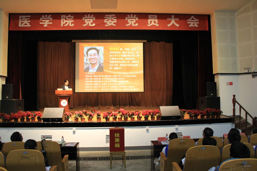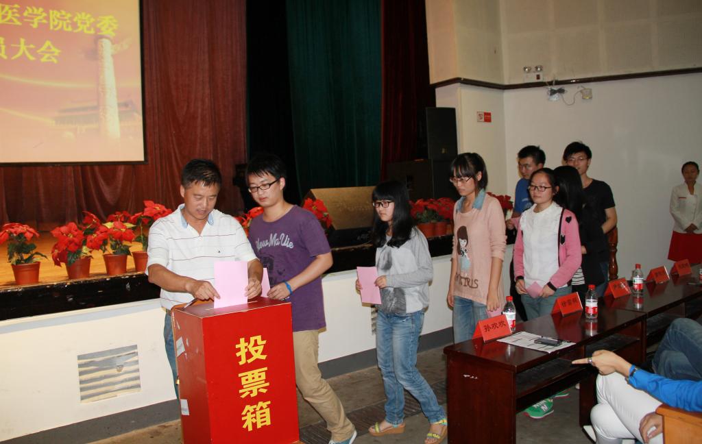 9月23日下午,医学院党委党员大会在锦绣小剧场胜利召开。会议通过了《中共色花堂 第三次代表大会代表选举办法》,并选举产生了学院参加校党委第三次代表大会的代表。大会由院党委书记骆巧凤主持,学院148名正式党员参加了大会。