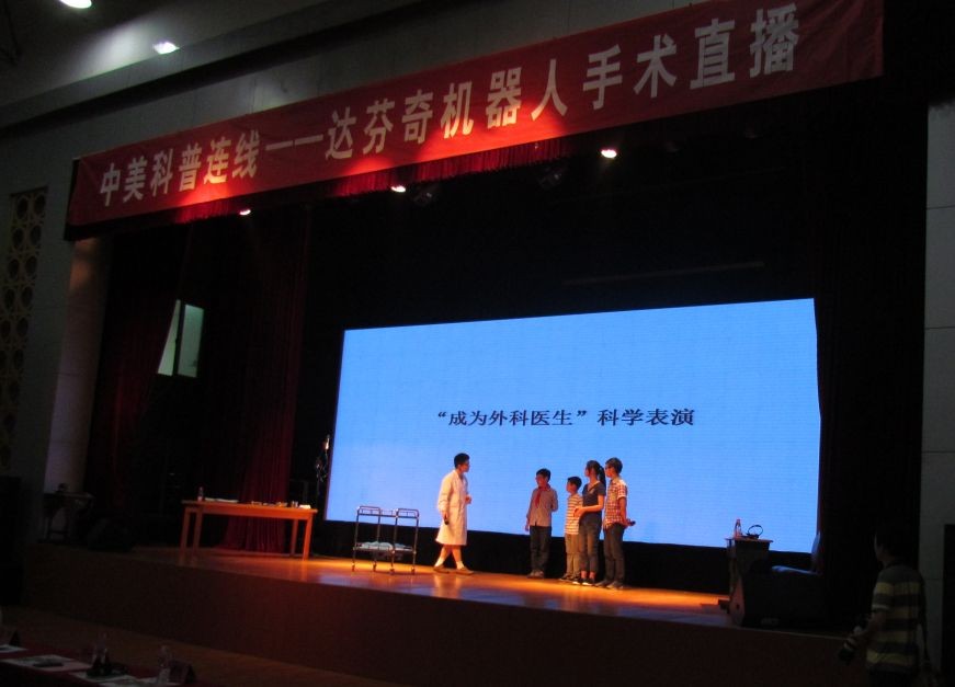 5月21日晚,由浙江省科学技术协会、美国纽瓦克贝斯以色列医疗中心、美国新泽西自由科学中心共同主办的第二届中美科普连线——“达芬奇机器人子宫肌瘤摘除手术”直播活动在宁波市惠贞书院举行,医学院作为执行承办单位组织了50名中外学生前往观摩。