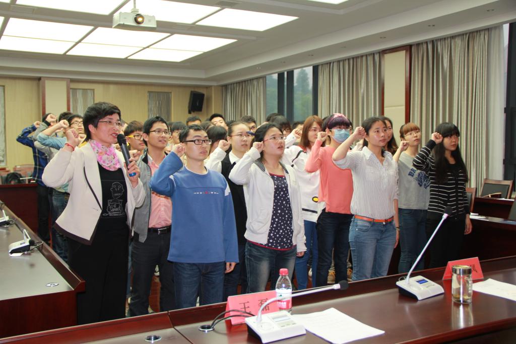 开班仪式上,学院分党校举行了新党员入党宣誓仪式。医学院44名预备党员在骆巧凤书记的带领下,面对鲜红的党旗,郑重地举起右手,庄严宣誓,响亮坚定的誓言震彻整个会场。