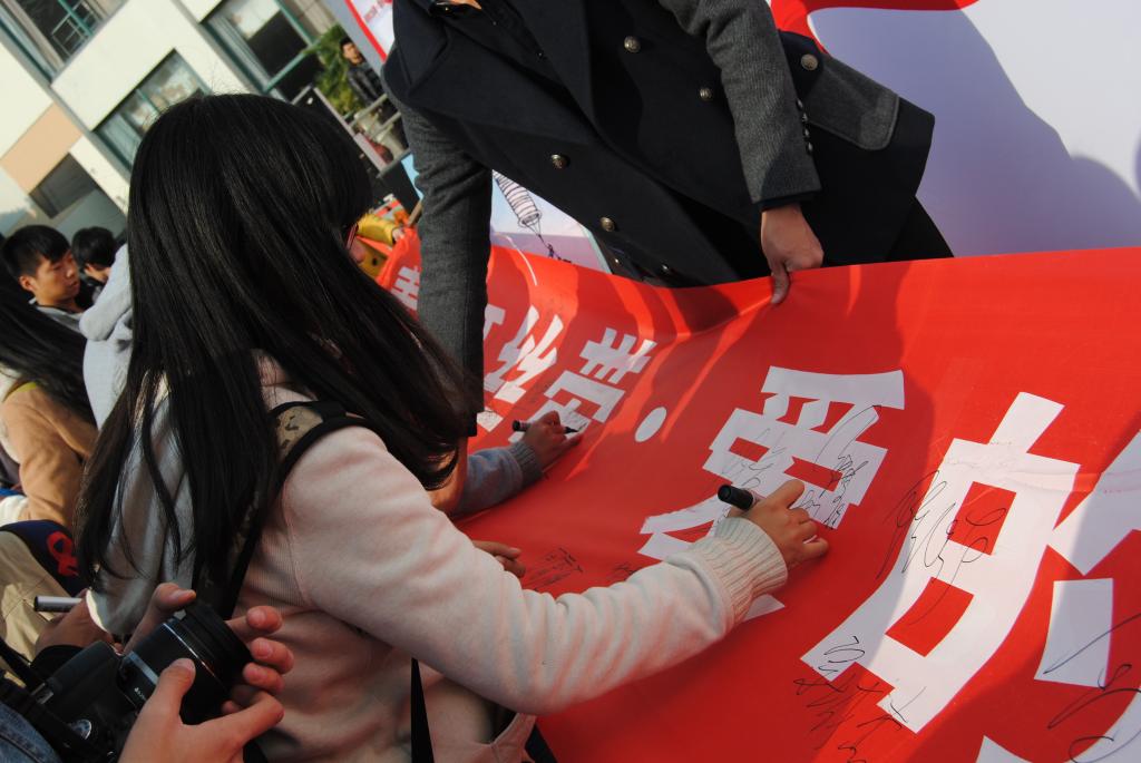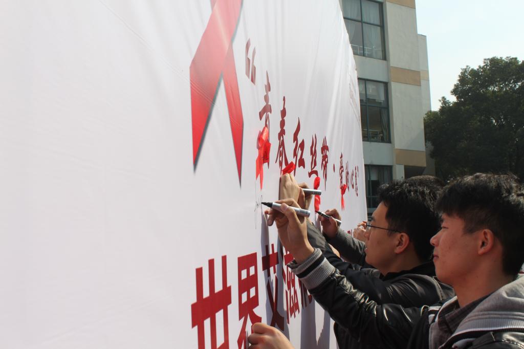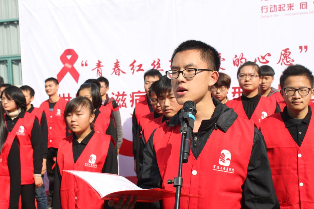 活动在医学院阳光120青年志愿者协会和海运学院同学共同带来的朗诵中拉开帷幕。江北区疾控中心结核病与艾滋病防治科吴峰科长介绍了近年来江北区艾滋病防治的相关情况,并与现场领导嘉宾一起为7支防艾实践小分队进行了授旗,此后这7支小分队将进入社区、工地、中小学宣传防艾知识。身着白大褂的医学生们带来了《青春红丝带·爱的心愿》手语表演,表演者手中演绎的红丝带象征着生机、激情和热血,代表着一条纽带,将全世界人民紧紧联系在一起,共同抗击艾滋病。活动中,来自医学院团委、医学院学生党支部、海运学院、阳明学院、机械学院、理学院同学组成的寻宝小组,带着爱和希望,将红丝带精神传播到校园的每一个角落。