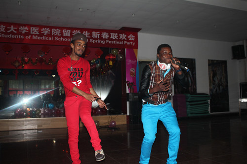 徐雷艇副院长代表学院领导首先致辞,他表示,在过去一年中,学院的留学生数量稳步增长,今后我院将进一步加强国际交流合作,提升办学水平,在继续扩大留学生规模的基础上,不断改进教育和管理工作。同时,他勉励广大留学生刻苦学习,文明守纪,希望学生们能在色花堂 医学院学有所成、生活丰富多彩。随后,来自印度、非洲和约旦等不同国家的留学生为大家献上了自己国家特有的表演,印度舞蹈、法文歌曲、萨克斯演奏等等为在场的嘉宾带来了一场视听盛宴。8名约旦小伙的集体舞蹈热情奔放,展现了男子汉的气势和团队的力量;非洲留学生贾斯汀用动情的演唱、深情的萨克斯演奏和激情的舞蹈一次一次把全场推向欢乐的高潮。晚会期间还设置了幸运抽奖和游戏,增加了师生之间的互动,现场一片欢腾。留学生更是精心为老师准备了新年贺卡和小礼物,字里行间传达着真挚的情意。晚会在全体演职人员共同高唱“朋友”中圆满结束。