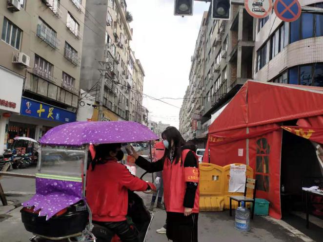 朱林芬同学:当时我偶然在公众号上看见了招募防疫志愿者的信息,其中有一条招募要求是优先为具备医疗防护、心理疏导等相关专业知识的志愿者安排岗位,我是预防医学专业的,比较了解防疫工作,感觉义不容辞,就报名参加了。