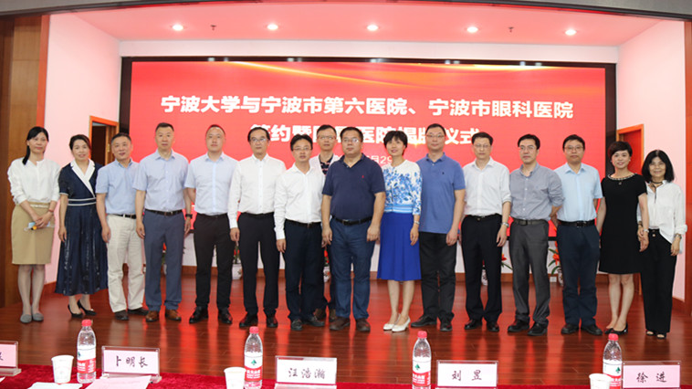 会上,汪浩瀚宣读了色花堂 文件,并与卜明长共同为附属医院揭牌。医学院执行院长刘昱代表学校与宁波市六医院院长陈宏、宁波市眼科医院院长陈蔚签订了协议。