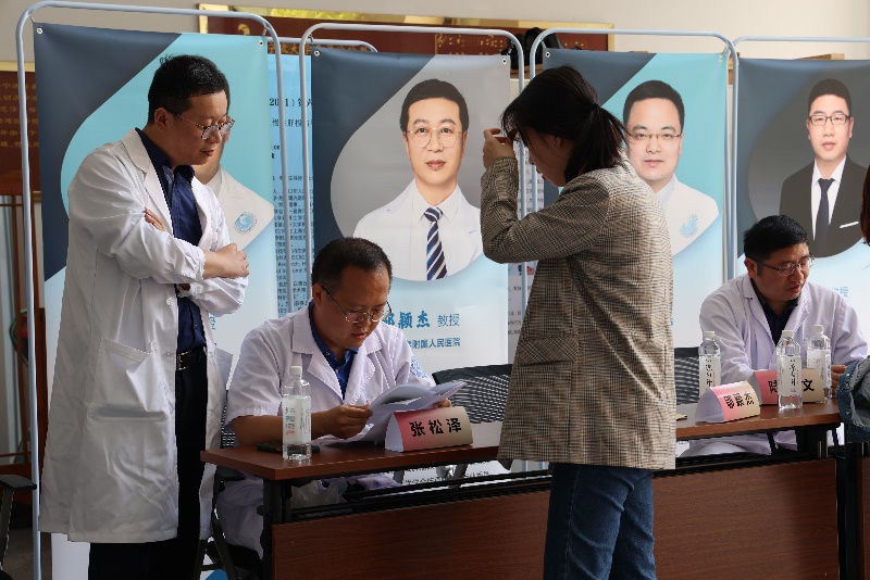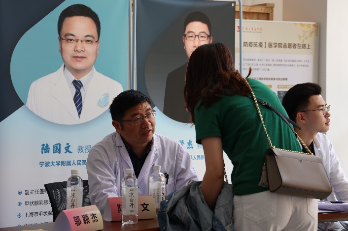 八点半开始,老师们陆续赶到现场,登记取号,在工作人员的安排下井然有序地进入大巴车内进行检查。发现问题的老师也会在现场向医生咨询,商议解决方案。