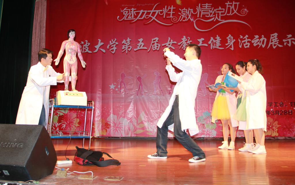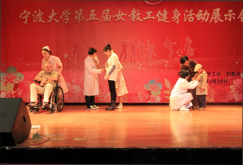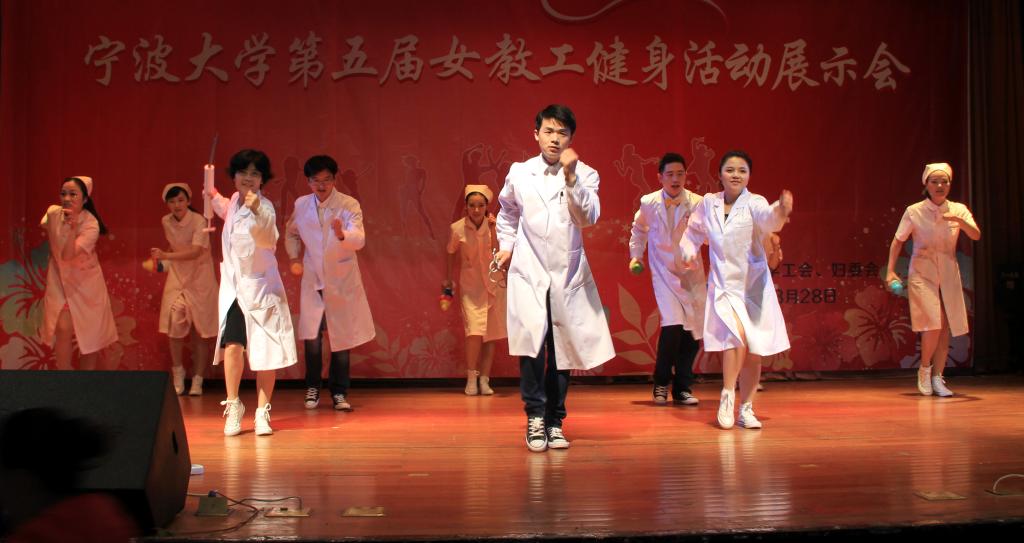 在3月28日结束的第五届女教工健身活动展示会中,医学院编排的原创情景舞剧《时间都去哪儿了》荣获最佳创意奖。医学院组织了由全体院领导班子、教师代表、上到年近7旬的外籍教师、下到年方5岁的教师子女等20余人组成的“超级豪华阵容”参加了本次演出。