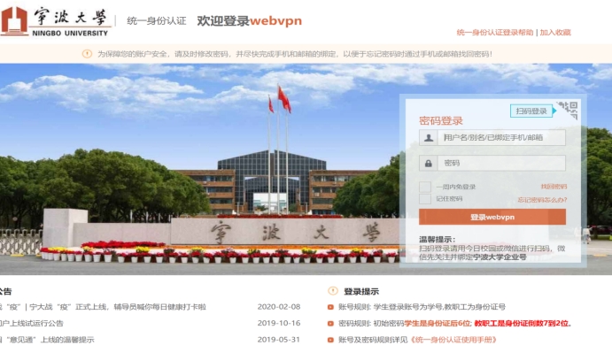 1、在校外打开webvpn网址//vpn.98shtweb.com,使用校内统一身份认证账号密码登录。(注意网址前缀是//,不是//)