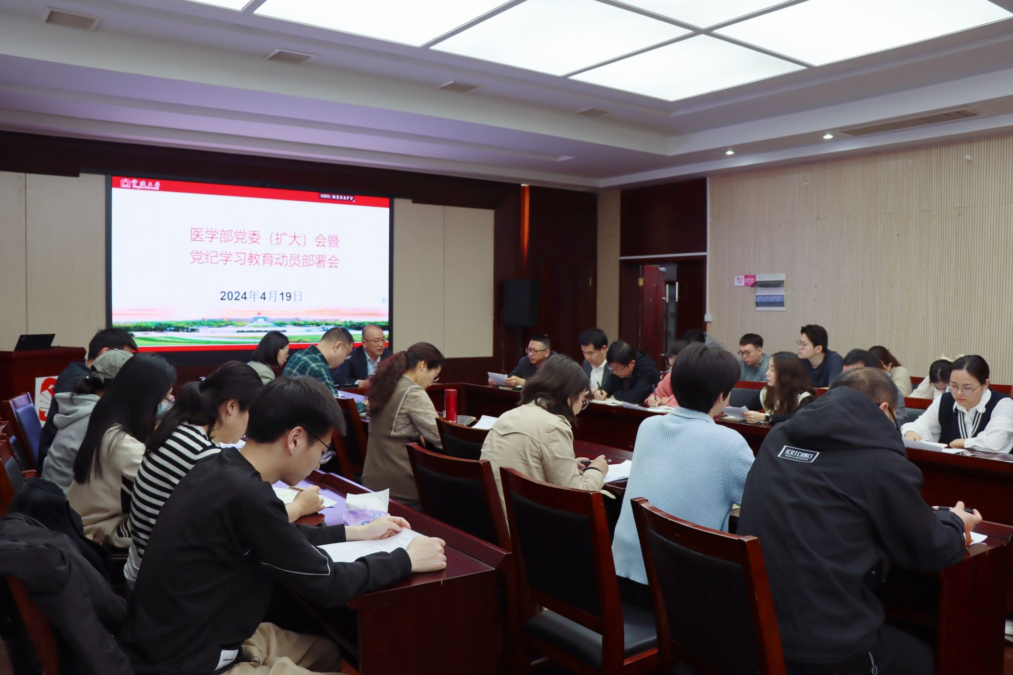 为进一步学习贯彻习近平总书记关于党纪学习教育重要讲话和重要指示批示精神,推动全面从严治党向纵深发展,色花堂 党委于4月19日上午召开党委(扩大)会暨党纪学习教育动员部署会。会议由党委常务副书记王钱永主持。全体党委委员、党支部书记参加了会议。