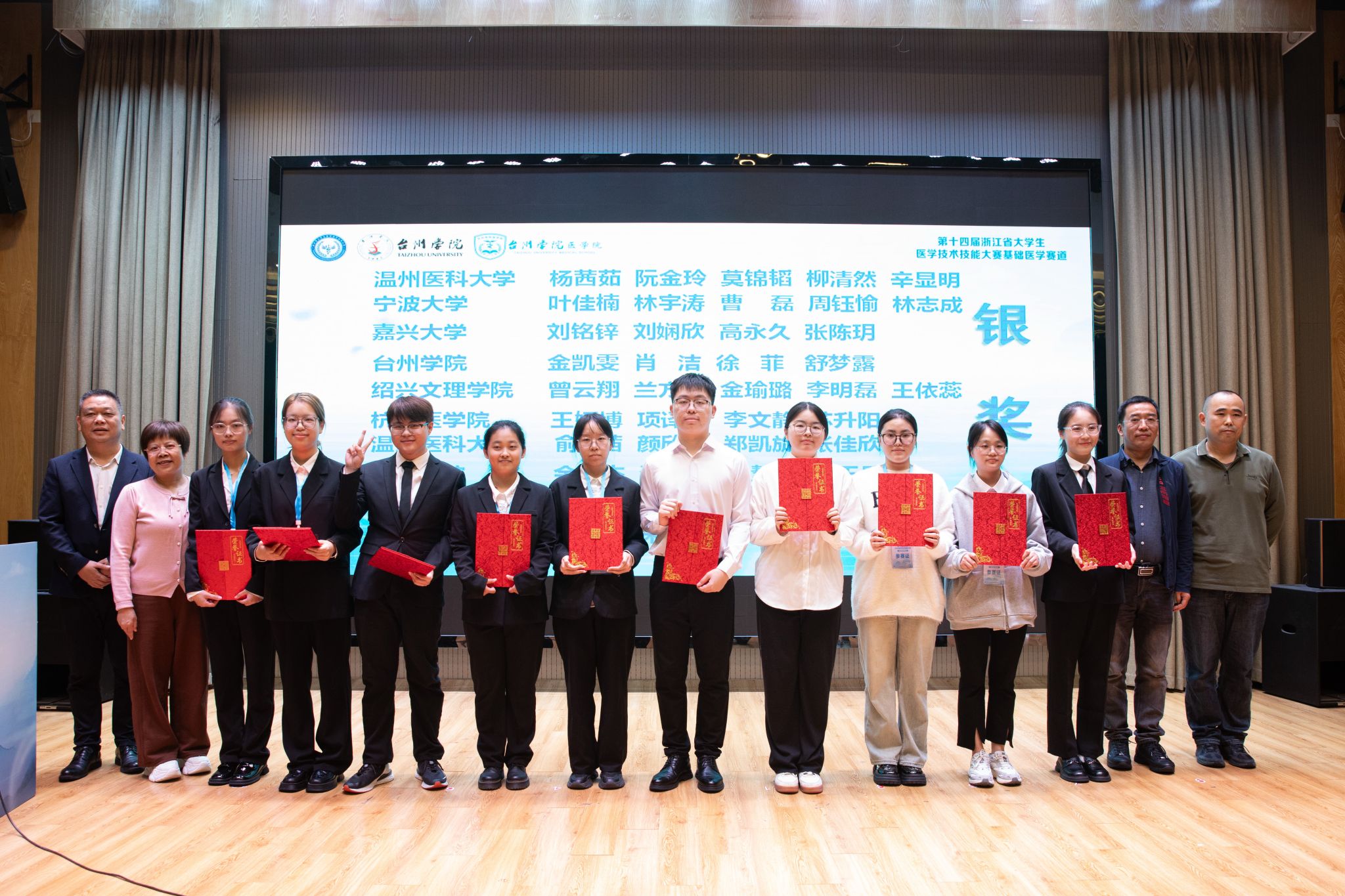 On October 26th, the 14th Zhejiang Provincial College Students' Medical Technology and Skills Competition in Basic Medical Sciences concluded at Taizhou College. The competition saw participation from over 160 medical students across 33 teams representing 10 universities in the province. Ningbo University Health Science Center, guided by teachers Mei Dixson and Li Liping, Jin Xiaofeng and Ye Meng, Chen Yiyong and Lin Rong, fielded three teams which achieved impressive results with one silver and two bronze medals.